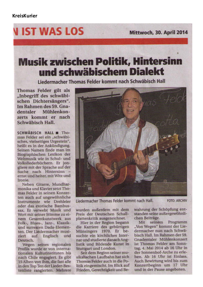 Schallplattenkritik ausgezeichnet. Seit Anbeginn hat sich Thomas Felder